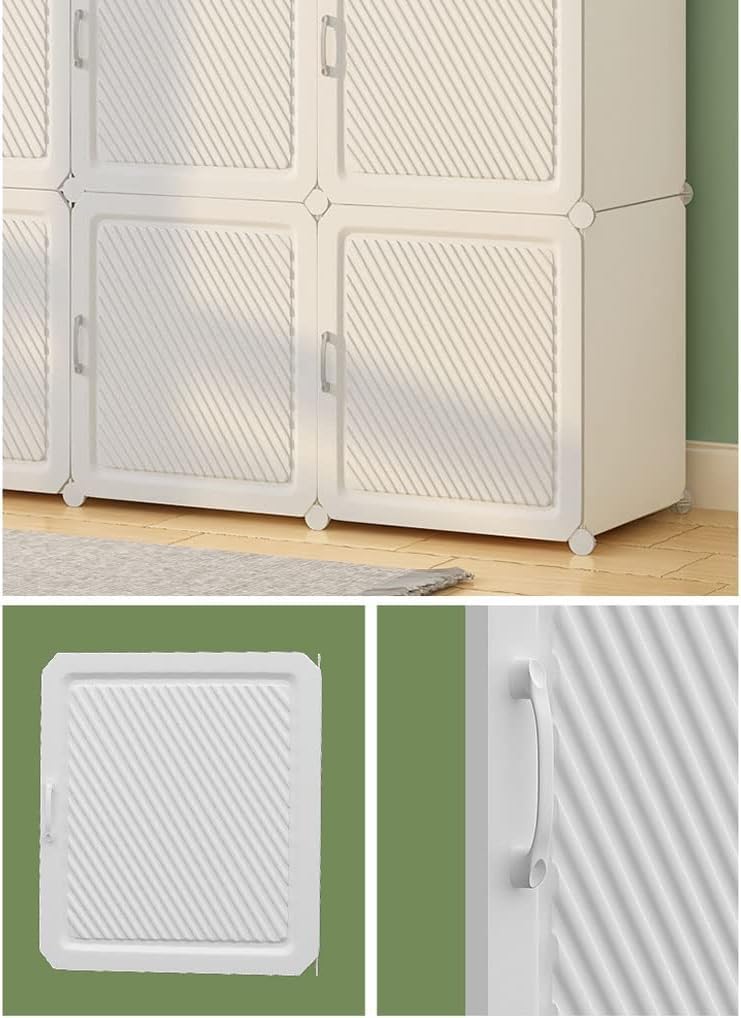 STRONG STORAGE ABILITY : 10lbs load-bearing for each cube, this shoe rack can hold shoes from athletic shoes, high heels or work boots to meet your long-term storage needs; dust-proof PP Plastic Doors with metal ring design for easily opening and closing.