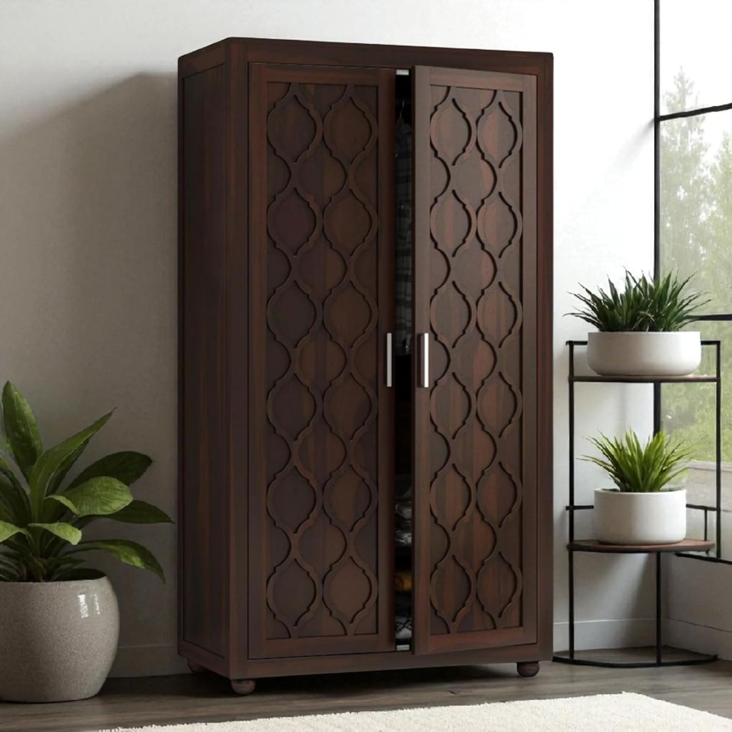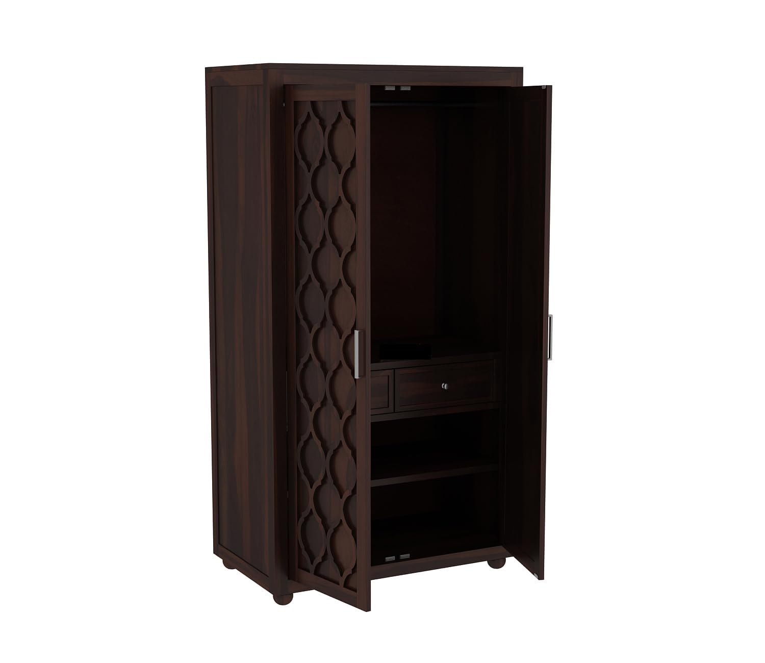 Ezu Wooden 2 Door Wardrobe Organizer for Storage with 2 Drawer 3 Shelves Storage & Hanging Space – Sheesham Wood Cupboard for Bedroom – Wooden Almirah Organizer for Clothes Storage