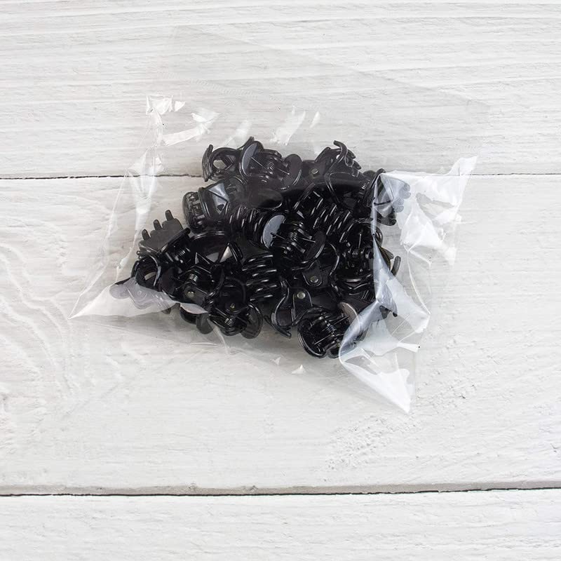 these mini hair claw clips are in black, they adopt durable plastic and metal material with good quality and will not easy to break