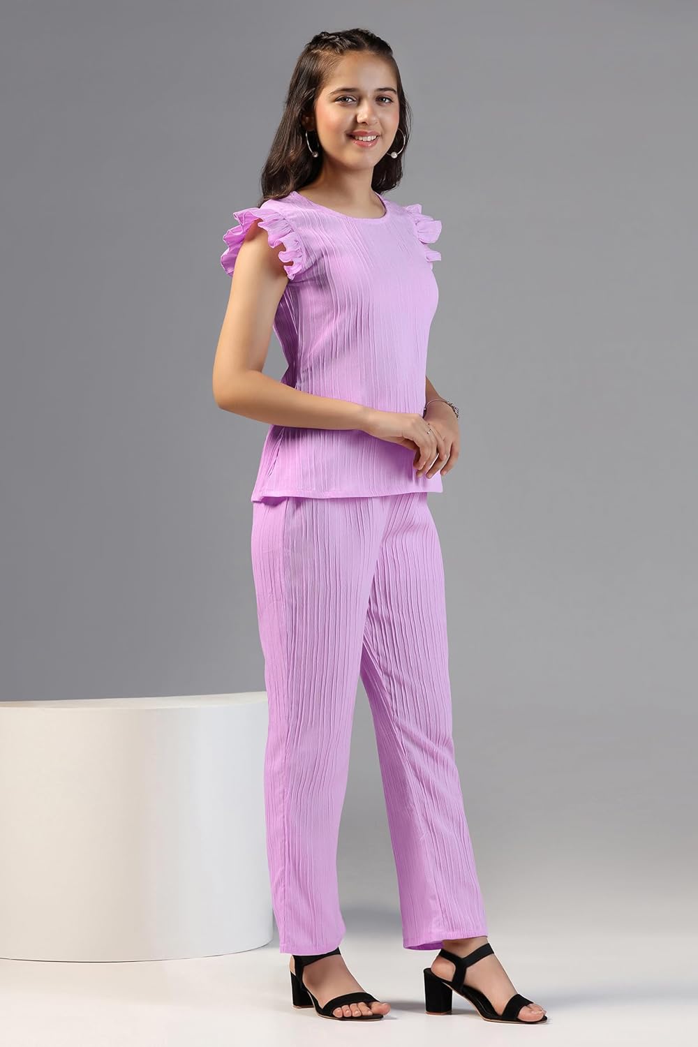 Your little one will be delighted with this simple yet elegant lilac apparel combo set. The two-piece set can be mixed and matched with other items in your girl’s wardrobe for added versatility. This cool and comfortable girls clothing set is perfect for summer adventures. The two-piece ensemble is both stylish and versatile, making it a great addition to your child’s wardrobe. Made of breathable retronic fabric, this set is ideal for keeping your little one cool during the warmer months. It features a classic round neck, Short Flutter Sleeves and comfortable pants with pockets and have elastic waistband at the backside of the pant to stash little treasures. The versatile design allows you to wear it with sneakers for play time or sandals for a casual look.