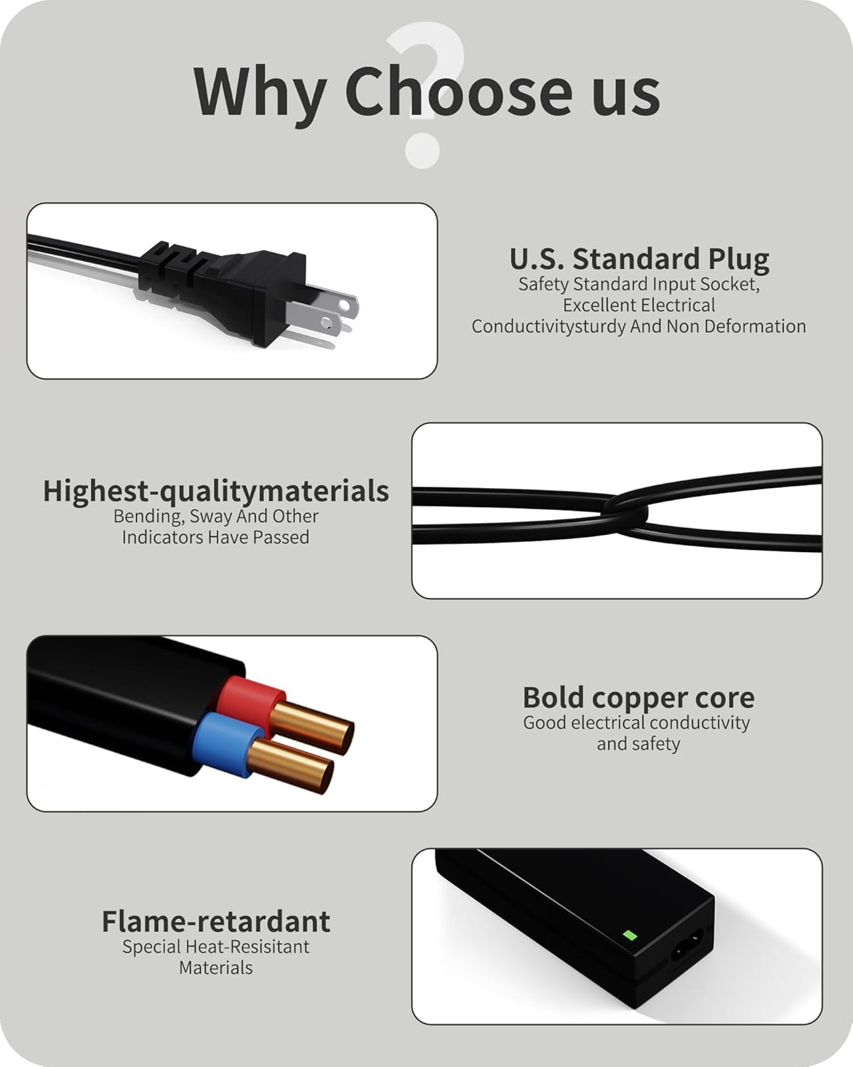 Safety Provides: All products including this replacement LG Monitor Power Cord has built in multi protection to ensure your safety during charging, provides multi protection such as over voltage output Protection, over Current output Protection, Short Circuit output Protection, over Temperature Protection