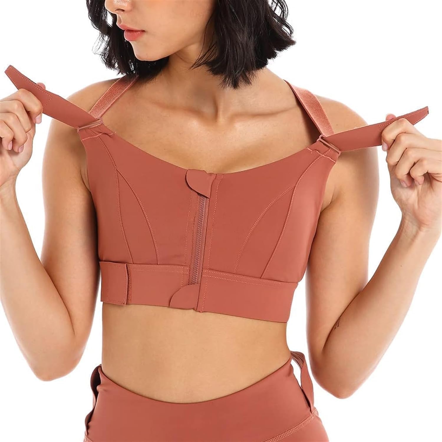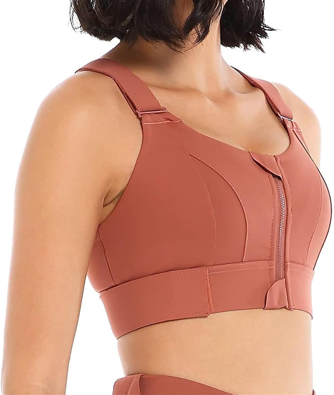 Introducing the Fshway High-Impact Velcro Sports Bra, meticulously crafted for the active woman who refuses to compromise on style, comfort , performance . Whether powering through a high-intensity workout or enjoying a leisurely yoga session, our sports bra provides the support you need while ensuring a customizable fit. With its innovative front zipper design, the Sports Bra offers ease of wear, allowing you to slip it on and off without any hassle. The velcro-adjustable hem and shoulder straps cater to your unique body, delivering personalized support and alleviating pressure on your shoulders and back. The criss-cross back is not only a chic design element but also aids in distributing weight evenly, enhancing your workout experience. Crafted with 4-way stretch fabric, the Sports Bra moves with you, providing full coverage and maintaining your shape with its padded, sewn-in molded cups.The moisture-wicking material ensures you stay dry and comfortable , while the wide straps and increased side coverage under the arms guarantee a secure fit, allowing you to focus on your fitness goals.