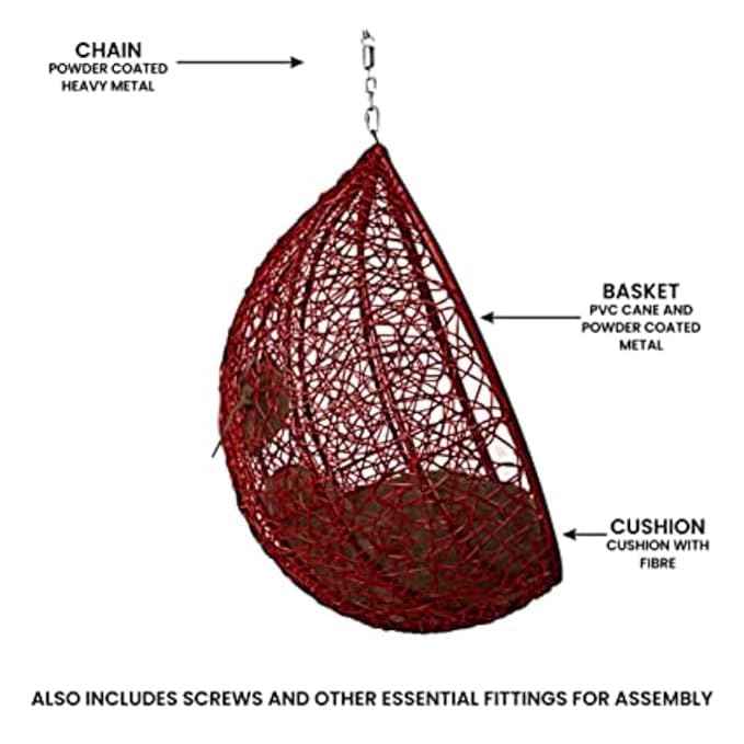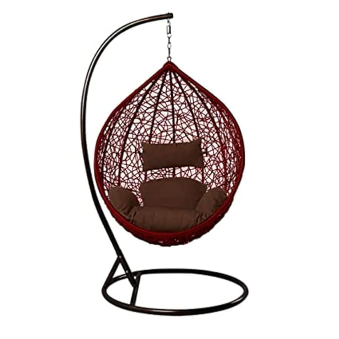 Furniture Single Seater Hanging Maroon Swing Chair Rattan & Wicker with Stand for Outdoor/Indoor for 1 Adults Person (Brown/Maroon)