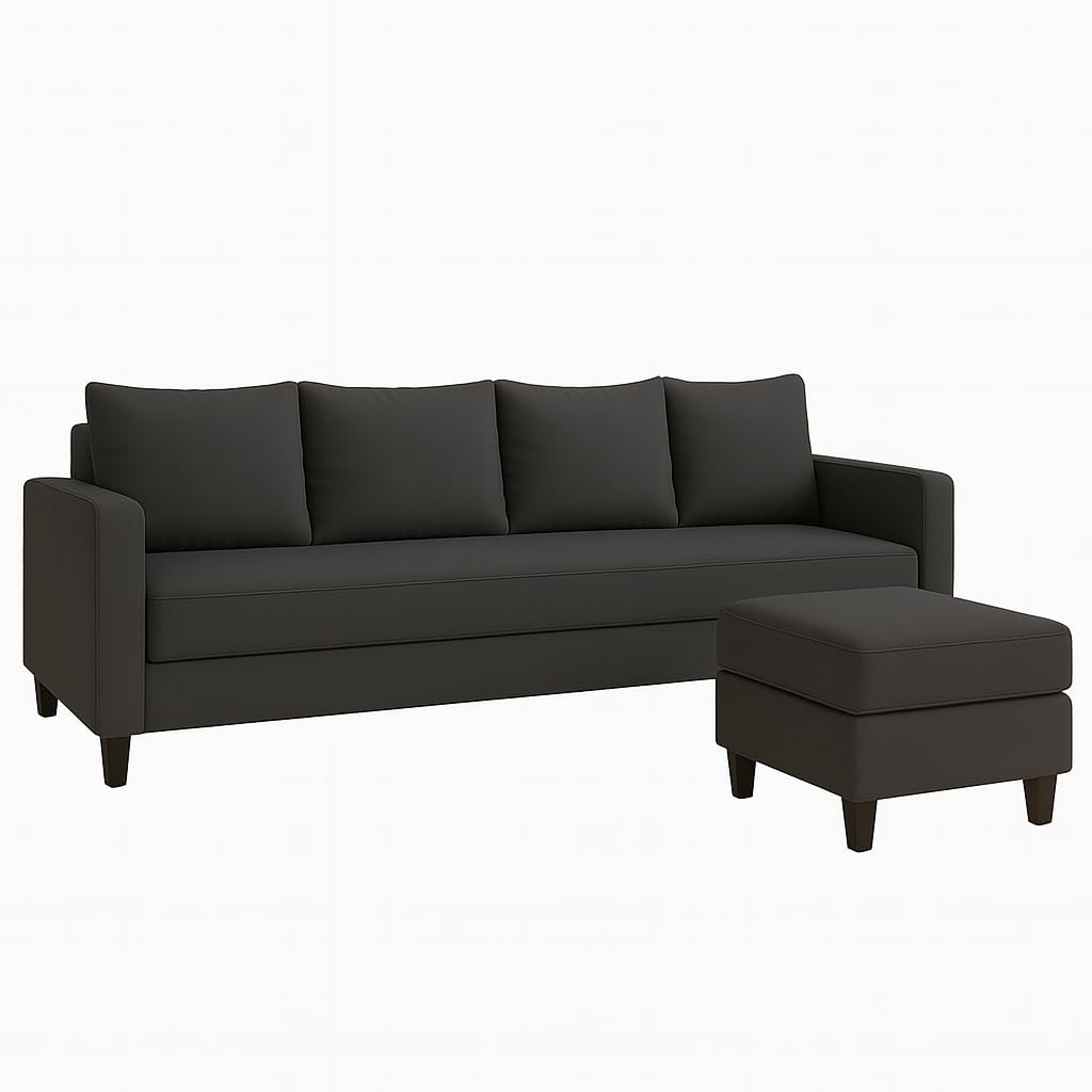 FURNY Premium Conva Fabric 5 Seater L Shape Sofa Set 4 Seater Modern Sofa Set & Ottoman for Living Room (Dark Grey Color)