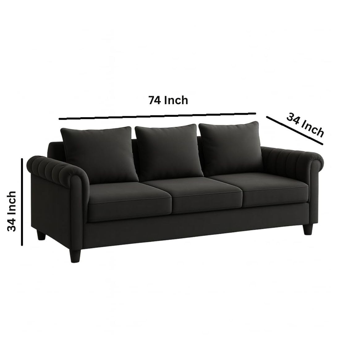 FURNY Premium Marina 3 Seater Fabric Sofa Set for Living Room (Dark Grey Color)