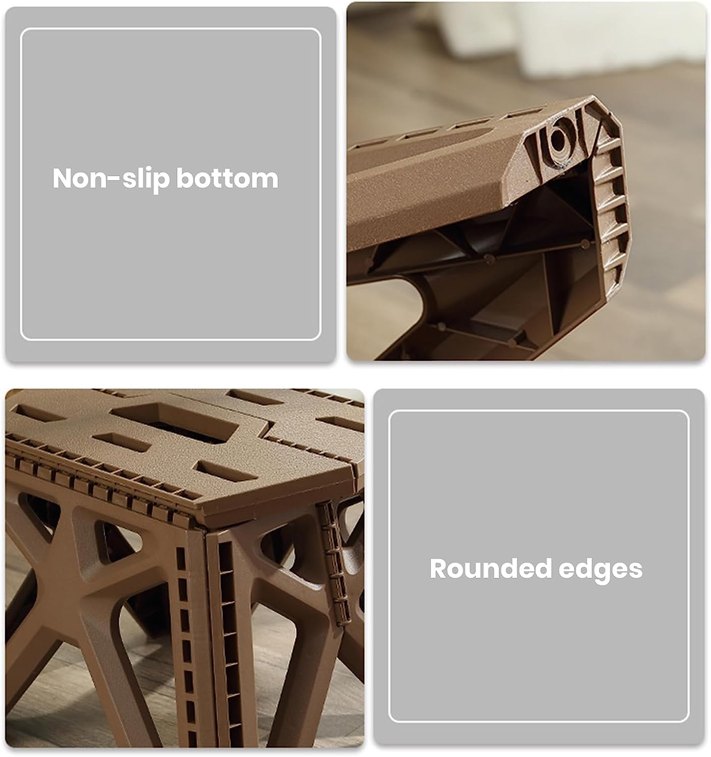 Foldable: The folded stool has a small area of about 19.3 x 13.4 x 2.4 inches (49 x 34 x 6 cm), and there may be a 0.8 – 1.2 inches (2 – 3 cm)