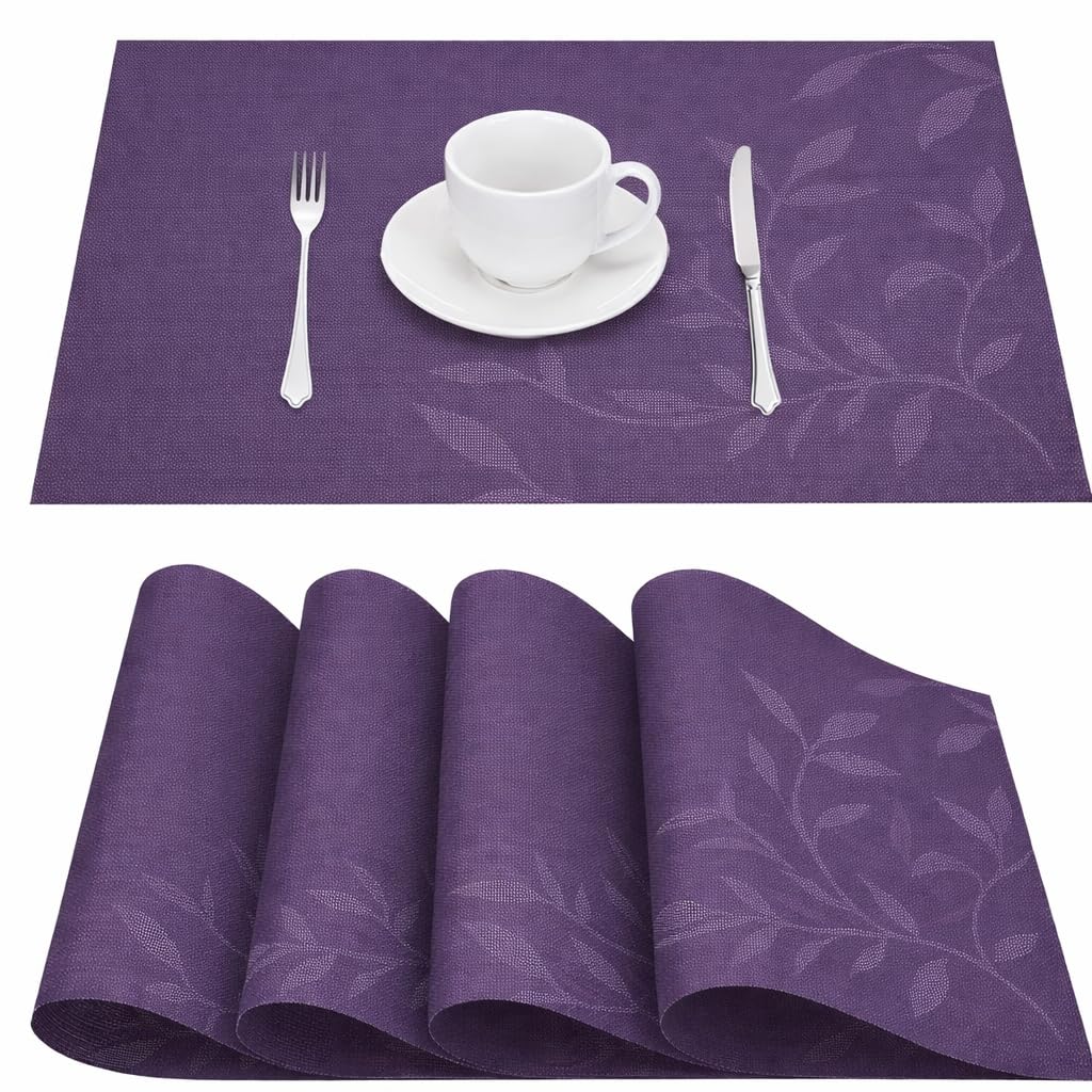 GKN Table Place Mats Set of 4 Luxury Dining Table Mats PVC Heat Resistant Table Mat Waterproof Kitchen Mat for Dining Table Washable Heat Resistant Colorful Anti Slip Drawer Mat (Purple, Pack of 4)