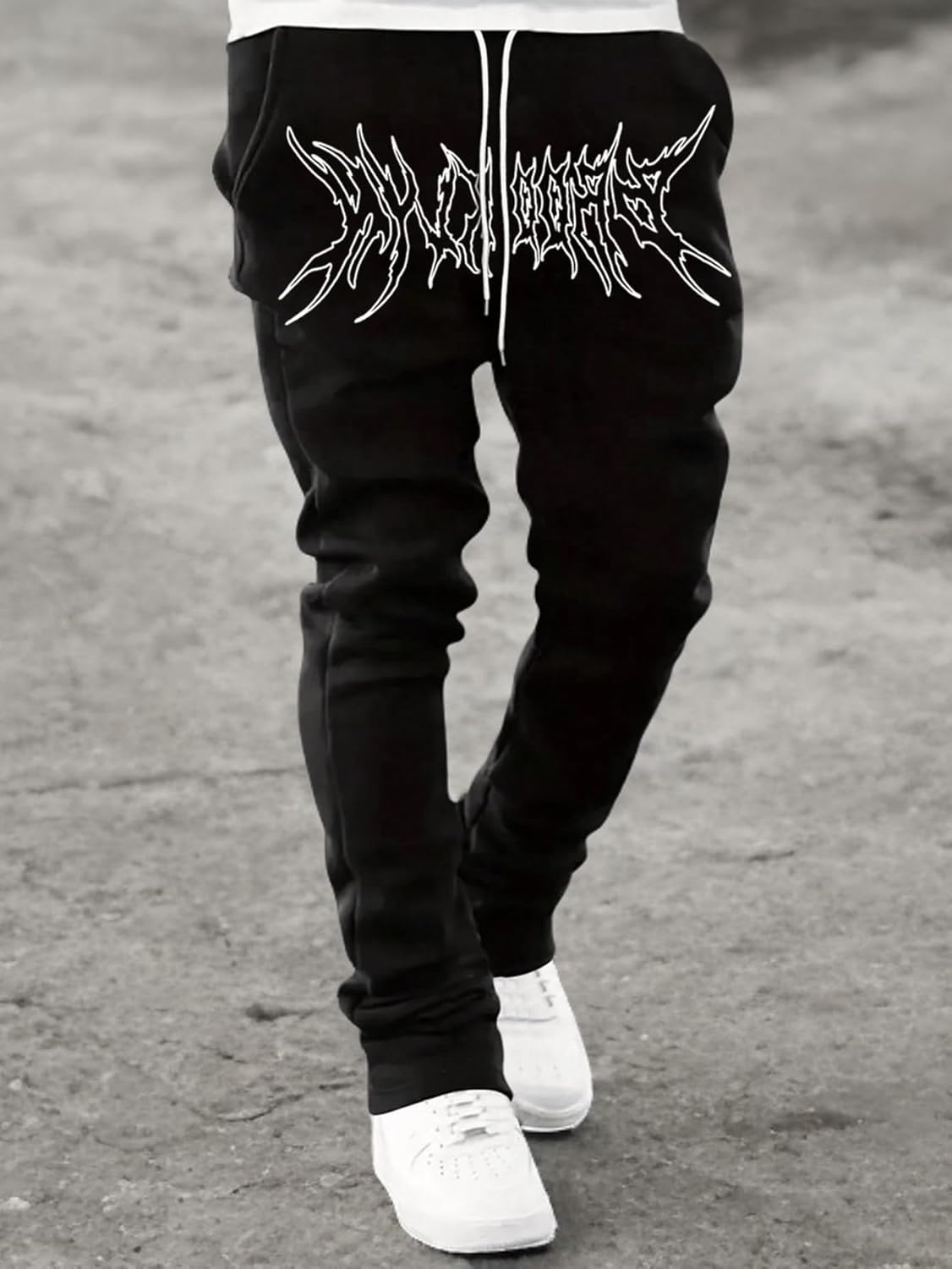 GORGLITTER Men’s Letter Graphic Stacked Sweatpants Flared Y2K Drawstring Waist Jogger Pants with Pockets