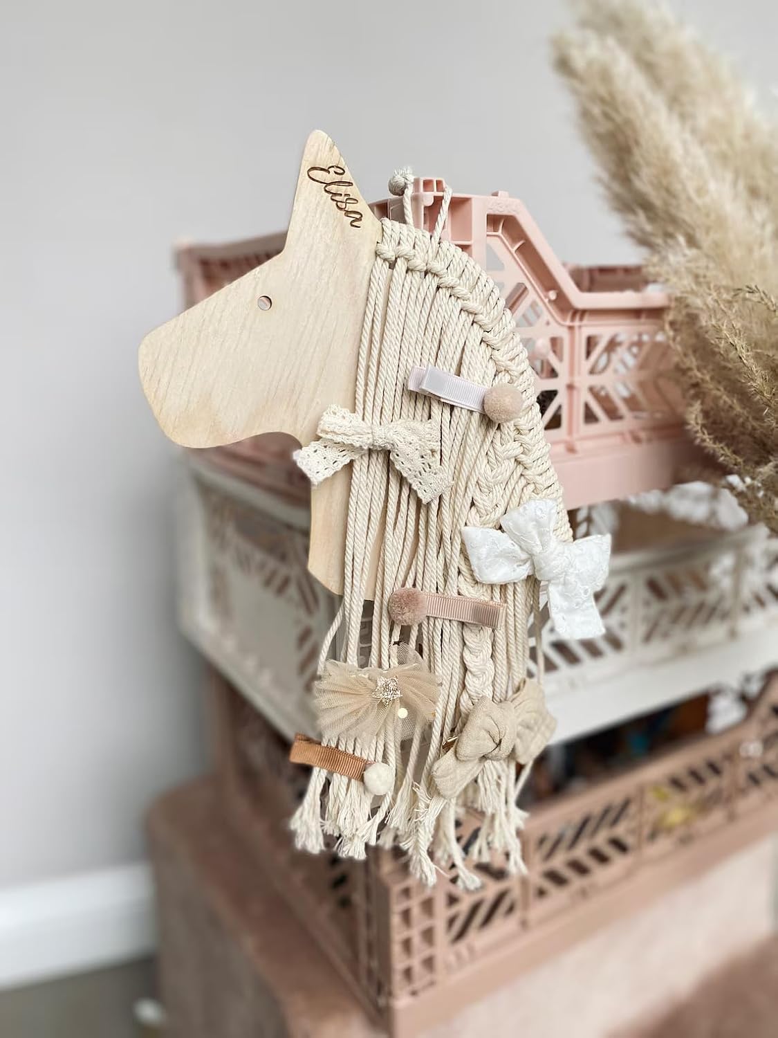 🐴 Customizable Hair Clip Organizer – Personalize with your child’s name on the horse’s ear. A perfect hair bow holder and organizer that doubles as stylish nursery decor for girls.