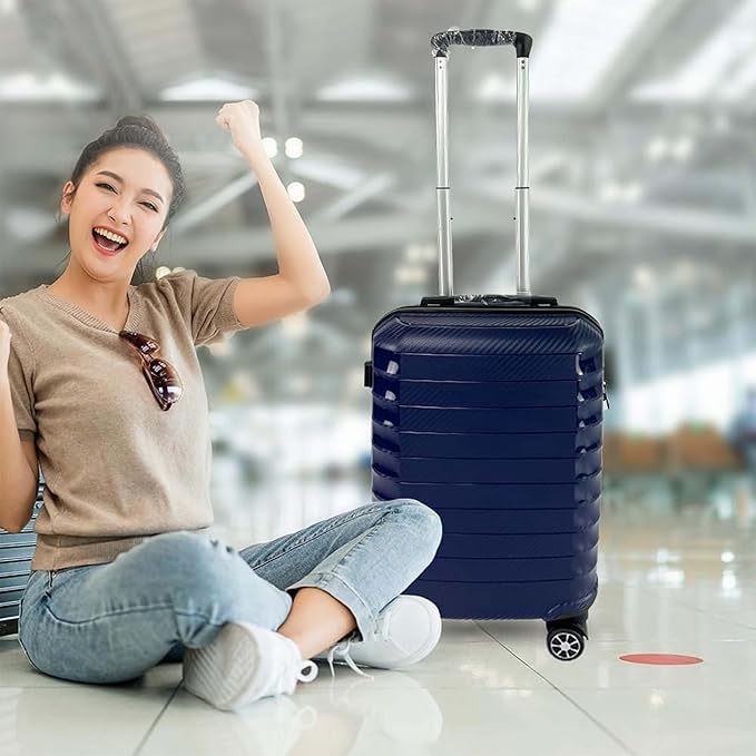 Heart Home 20inch Strong & Lightweight Cabin Trolley Bags with 360 Degree Rotating Wheels | Expandable Carry-On Cabin Luggage Suitcase | Bags for Travelling | PP103020DKBLE-Blue