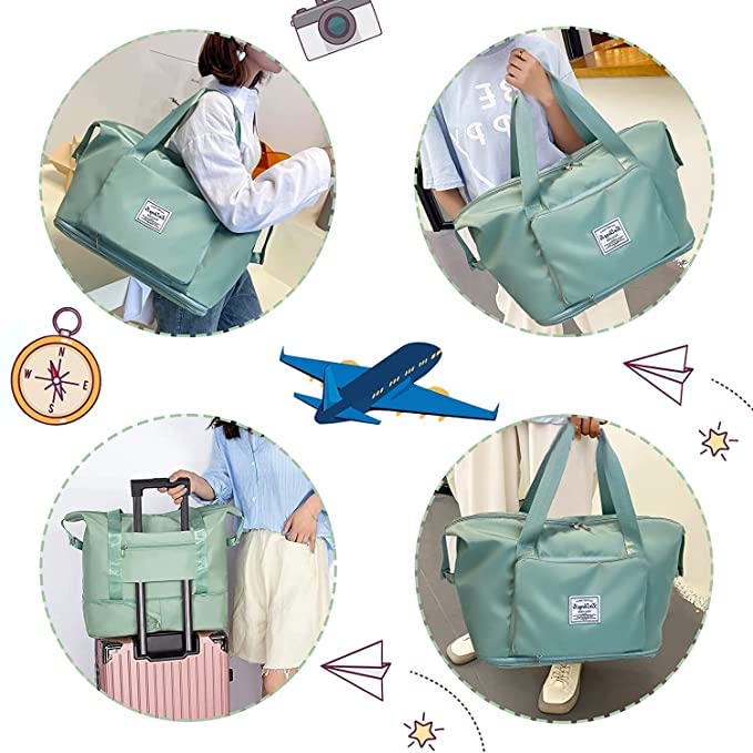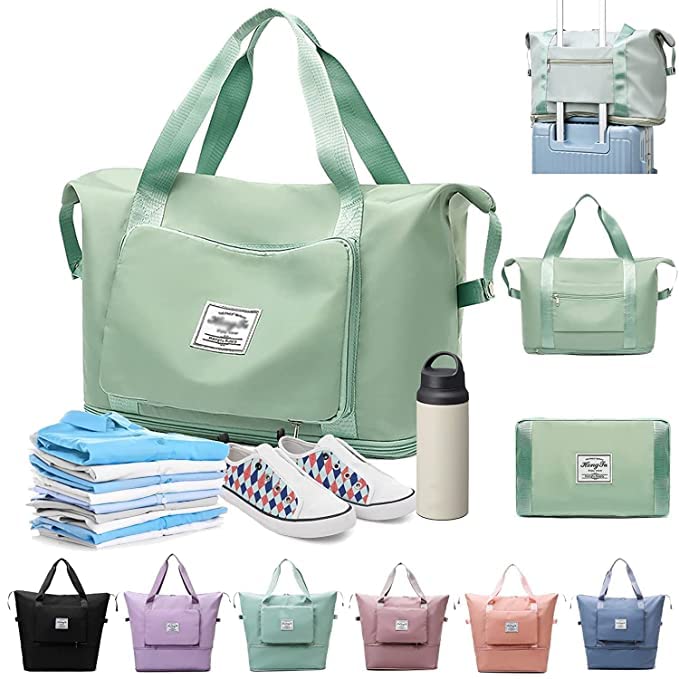 - ✔Expandable travel duffel bags provide up to 2 levels of expanded sizes to meet most weekend travel needs. The dry and wet separate pocket provides exclusive pockets for toiletries and wet towels, a good choice for sports gym bags. Luggage handle sleeves with zippers are a must-have feature for long-distance travel, convenient for storing mobile phones and air tickets. The waterproof fabric effectively protects the luggage to keep it dry in rainy weather. Waterproof fabric prevents sweat and rain from getting wet. Put wet towels and toiletries in a wet bag to keep other items dry. KINDRED bag Multi-color design can provide exclusive space for luggage. The main compartment provides effective protection for the laptop, and small luggage is placed in the exclusive compartment to keep the luggage neat and orderly. Large capacity travel bag greatly save space after folding, easily carry on your flight and travel after expansion.