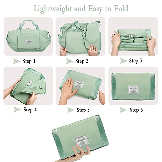 folding travel bag made with lightweight waterproof and nylon fabric, durable and strong enough to carry. It is enough for short trips and can easily accommodate 3-5 days of travel clothes.