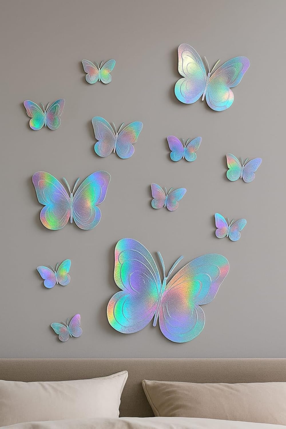 Holographic 3D Butterfly Wall & Hanging Decorations – Set of 11 | Glitter Rainbow Effect, Double-Sided Tape & Hanging Strings Included | Room, Party, Wedding, Kids Birthday, Home Decor