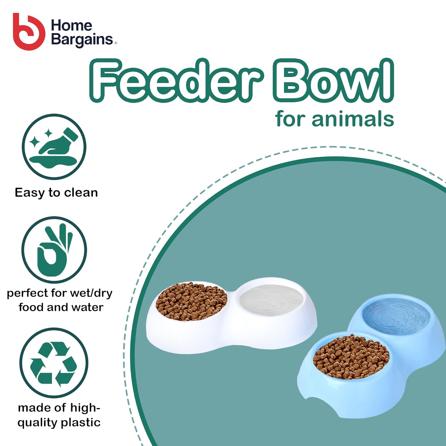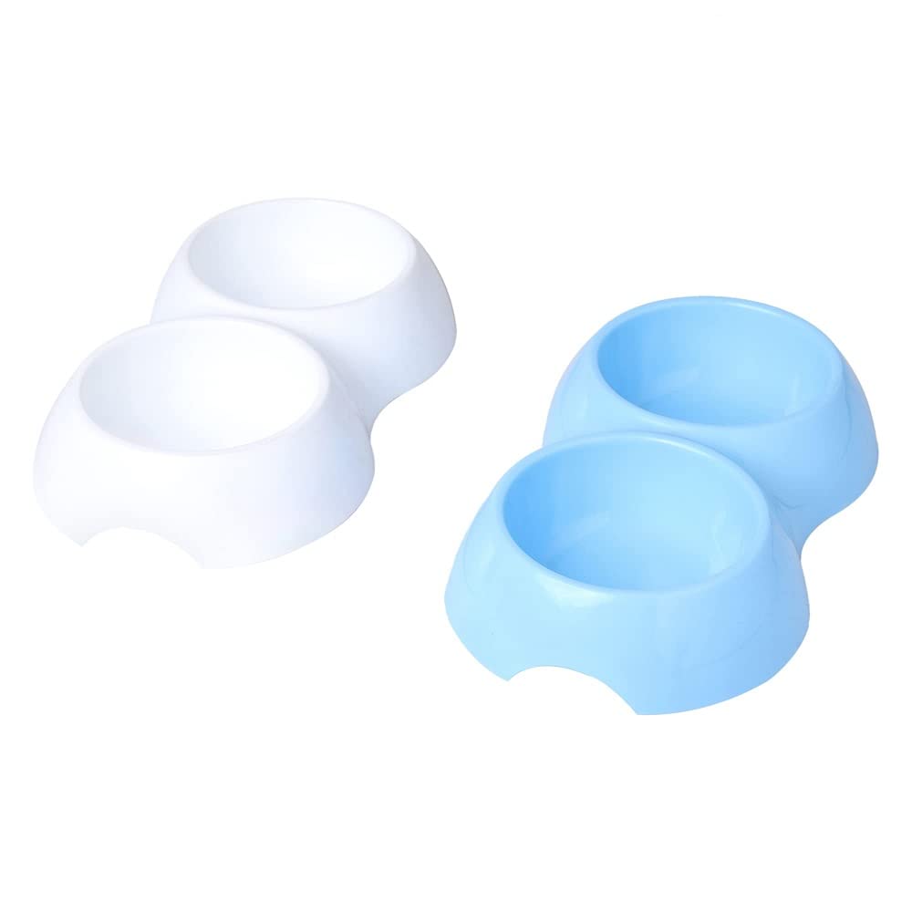 Home Bargains 2-in-1 Bowl for Dogs and Cats | Non-Slip, Non-Toxic Pet Feeding Plastic Double Bowl for Food & Water Feeder, White and Blue
