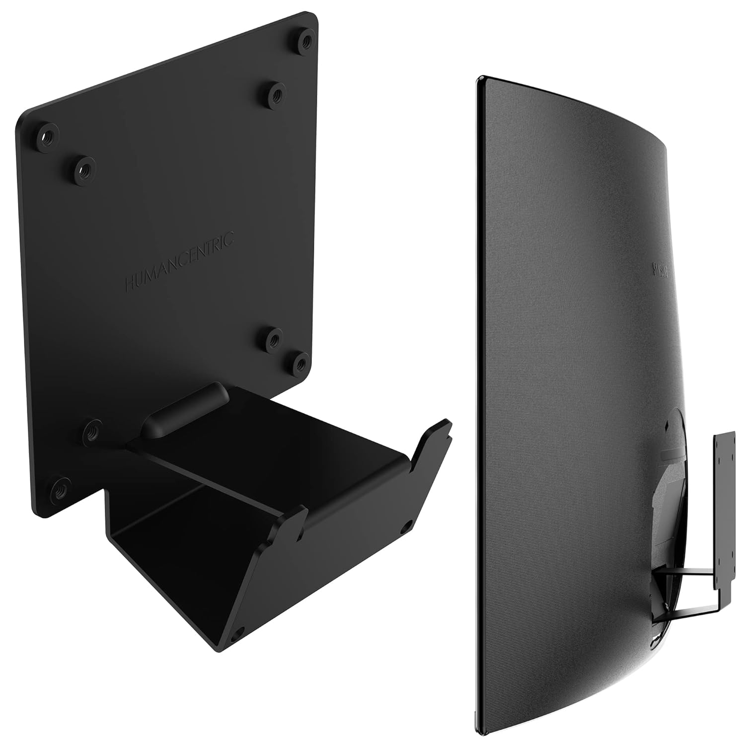 Mount your non VESA Samsung curved monitor on a standard VESA mount with HumanCentric VESA adapters: Mount the unmountable and get your monitor onto a VESA mounting system. Use this VESA adapter to attach certain Samsung curved monitors to VESA arms, VESA stands, and VESA desk mounts. The mount adapter makes your monitor attachable to standard monitor mounting sizes of 75×75 mm and 100×100 mm found on most workstation VESA mounts.