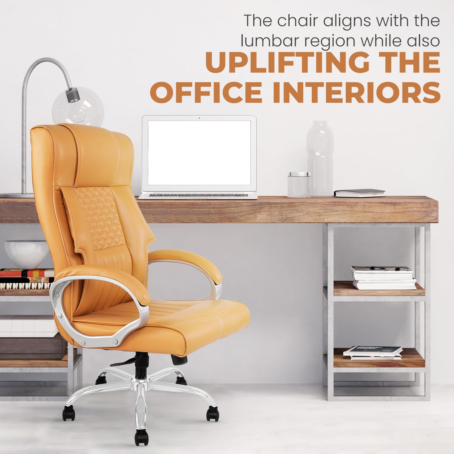Imperium | Leatherette Ergonomic Boss Chair | Spacious Cushioned Seat | High Back Executive Chair | Fixed Padded Armrests | Heavy Duty Metal Base | 2 Years Warranty (Mustard) (DIY)