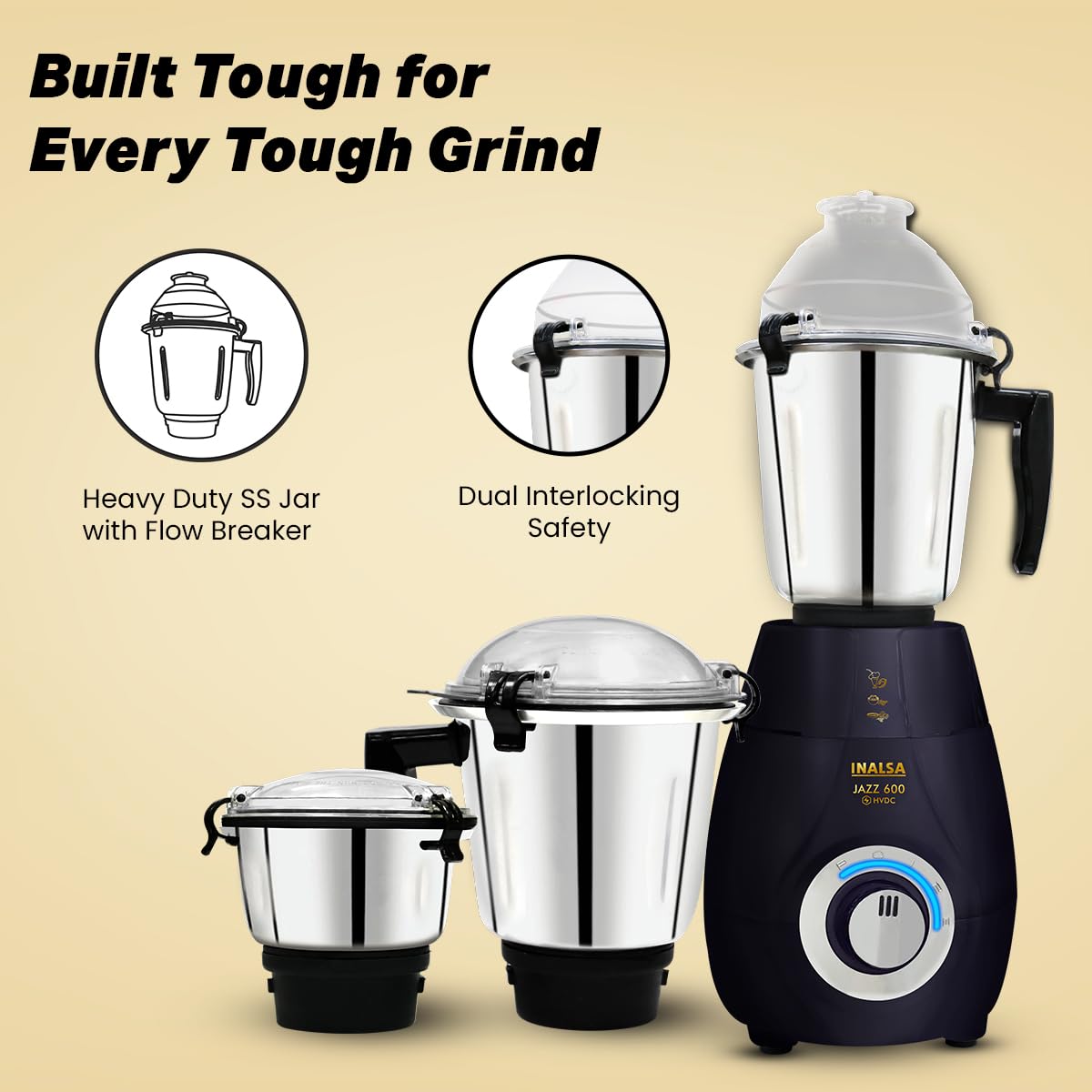 Powerful & Energy-Efficient Motor – The 600W high-performance motor delivers efficient grinding and blending while consuming less power. Ideal for preparing smooth batters, chutneys, and spice powders with ease.