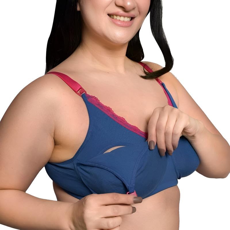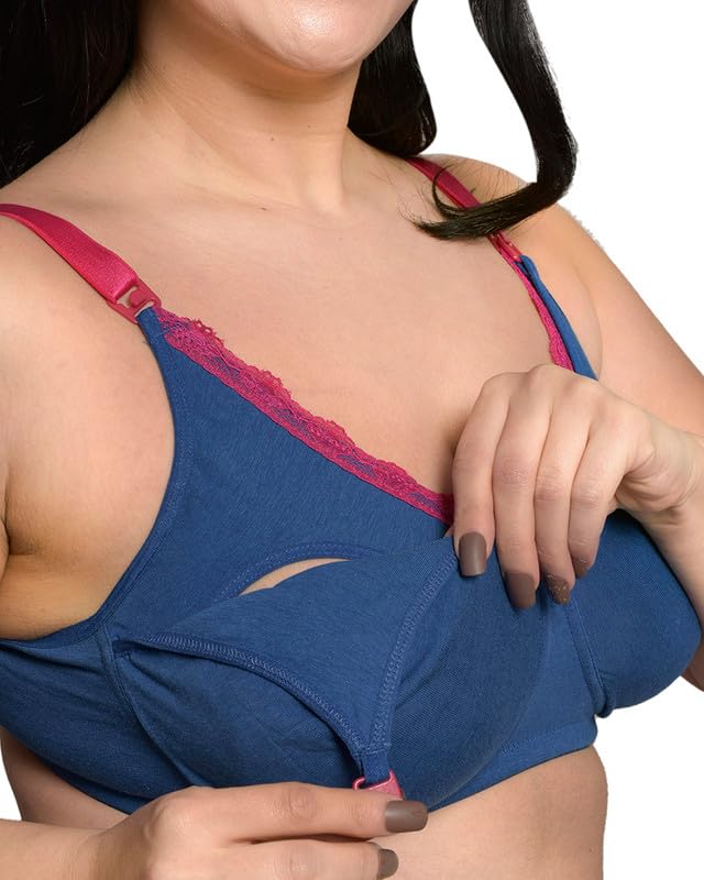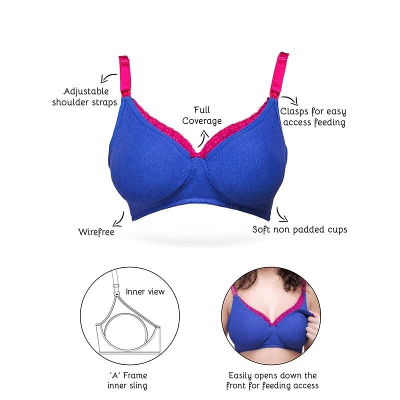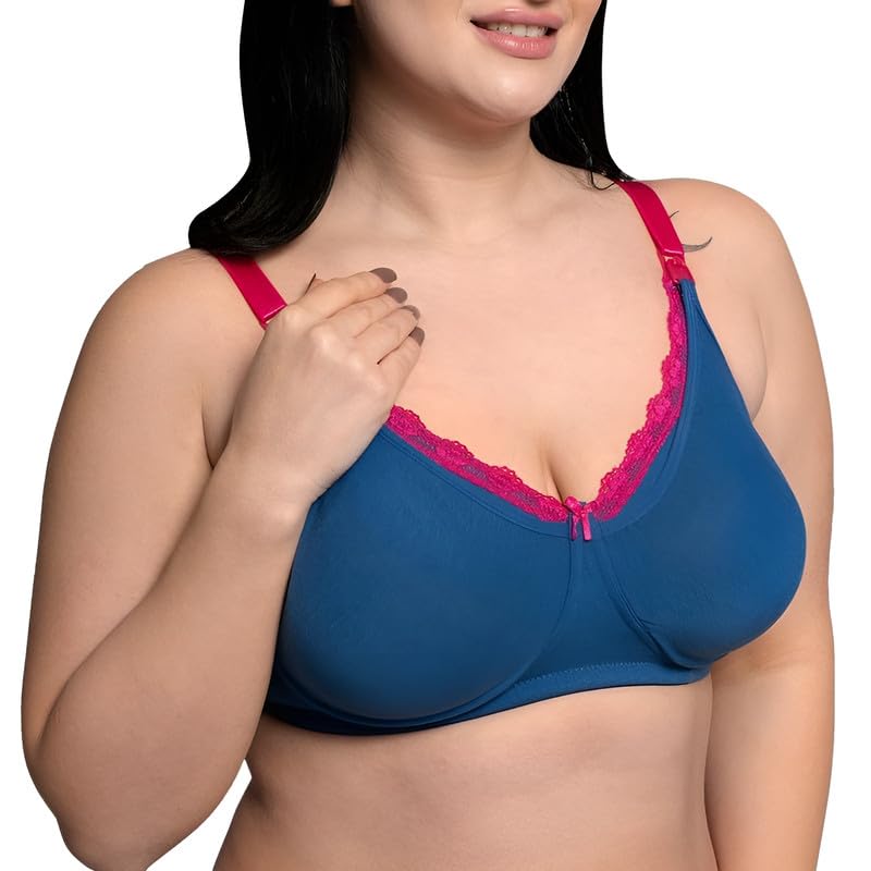Inner Sense Organic Cotton Bamboo Nursing Bra for Women I Plus Size High Coverage Feeding Bra Without Padding I Lace Trim Maternity Wear with Wire Free Design