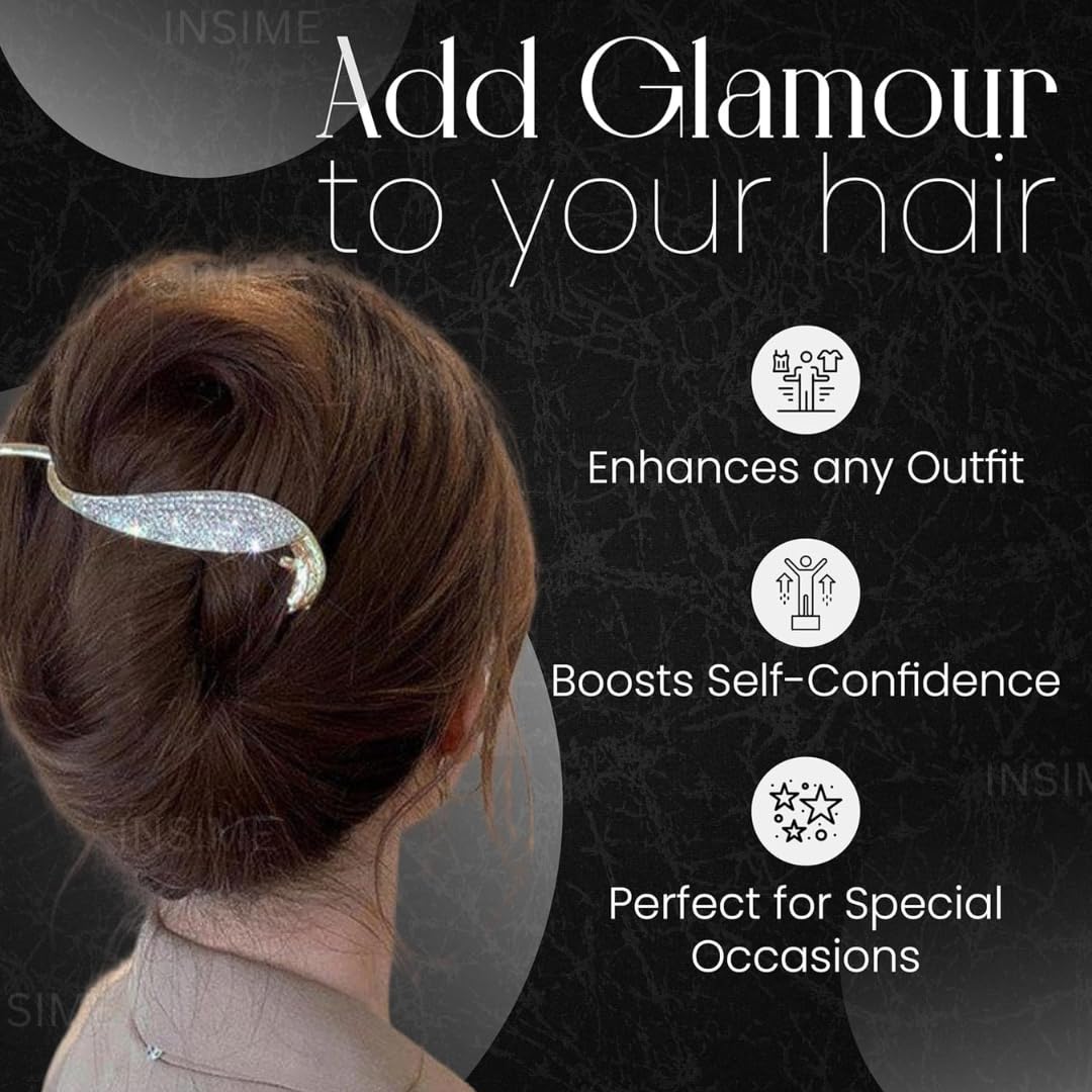 【Premium Materials】- French bun banana hair clips for women stylish are made of rhinestones, electroplated copper metal, durable & shining,not easy to fade or break, ,long service life. The shiny sequined surfaces make the hairpins look delicate & beautiful.