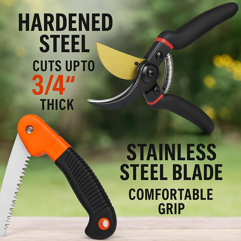 🔹 Multi-Purpose Tool – Works as a pruning scissor, branch saw, and outdoor hacksaw – ideal for gardeners, landscapers, and DIY plant care.