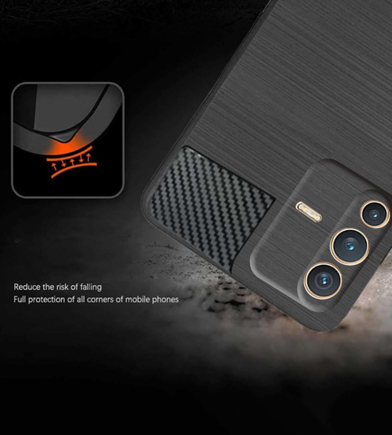Jkobi Back Cover Case for Vivo V23 5G (Hybrid Armor Case | Carbon Fiber Shockproof | Soft and Flexible | Black)