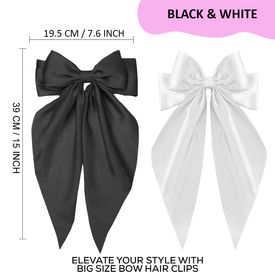 kapimo 2 Pcs Bow Hair Clips for Women Girls Satin layered Barrette Ribbon Hairclips Stylish Cute Hair Accessories (Black – White)