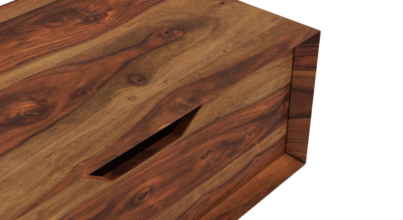 KINGWOOD FURNITURE French Wall Mount TV Unit Shelf Storage in Solid Wood Sheesham (Honey with Drawer)