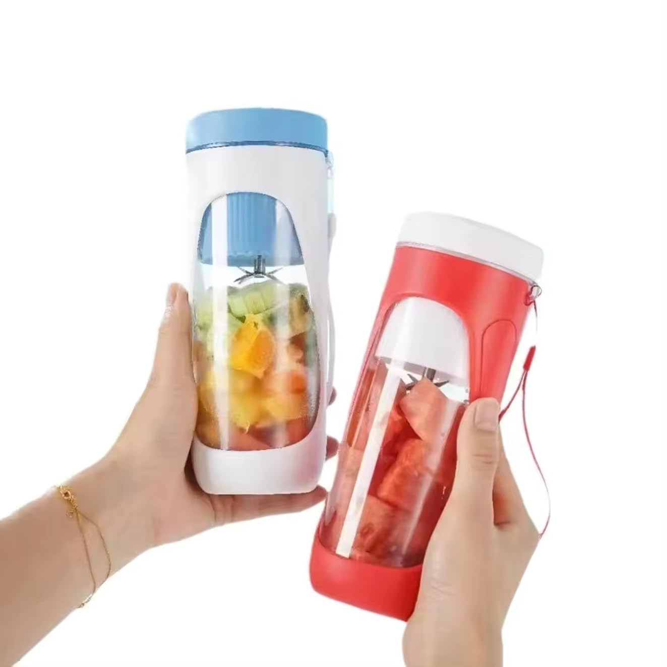 【Safe Material】 Made of silicone, stainless steel and PC (Polycarbonate) plastic, high quality and durable. Our portable blender is made of high-quality and safe materials, without any odor. Moreover, it is heat and cold resistant, anti cracking. Get this beautiful and practical blender so that whether at home, in the office, in the gym or camping, you can freely DIY drinks and enjoy the fun of life in the summer.