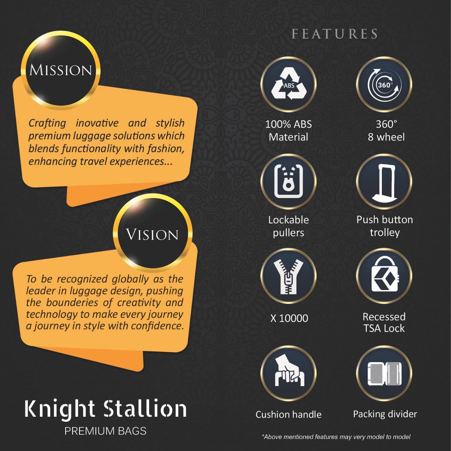 The KNIGHT STALLION Pure Polypropylene Hard Luggage combines durability, style, and functionality for the modern traveler. Made from high-quality polypropylene, this hard trolley bag is designed to withstand the rigors of travel while keeping your items safe and secure. Featuring 360°, 8 spinner wheels, this luggage offers smooth maneuverability, ensuring ease of movement. With a spacious interior and multiple compartments, it’s perfect for both men and women who need a reliable, sturdy travel companion. Whether you’re traveling for business or leisure, this luggage is your perfect choice.