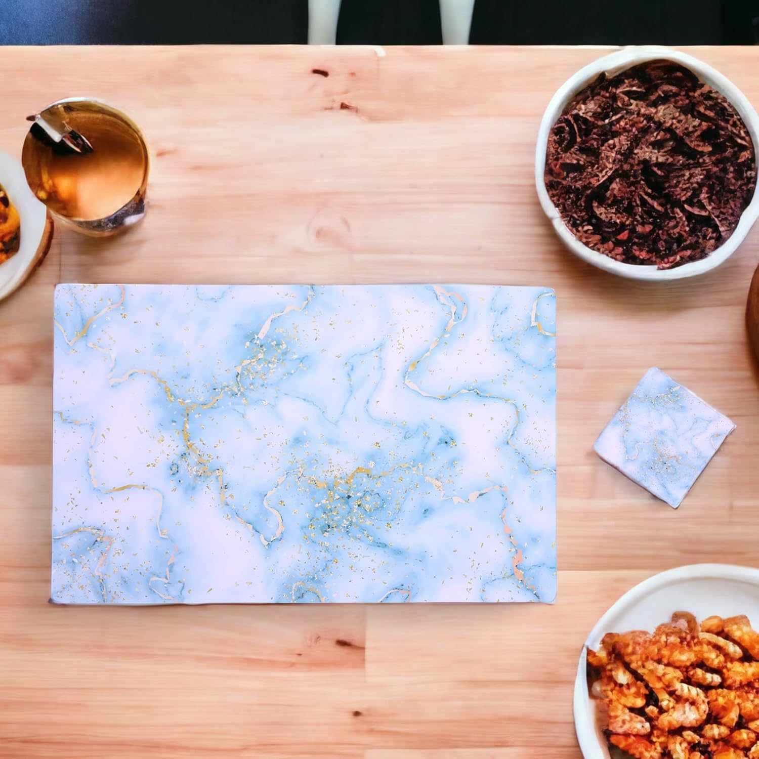 Kuber Industries Placemat | PVC Table Placemats with Tea Coasters | Dining Table Placemats & Coasters Set | See Gold | 12 Piece Set | Sky Blue