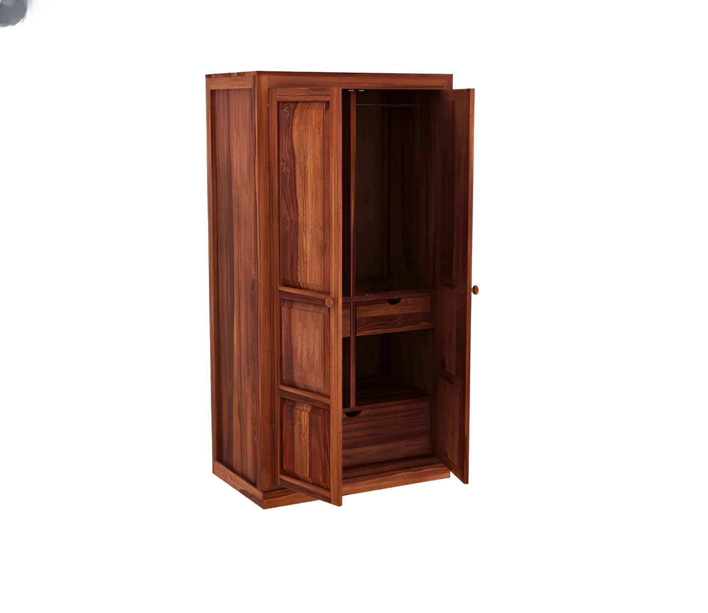 The wooden wardrobe is treated with a natural color finish that enhances the natural beauty of the sheesham wood.