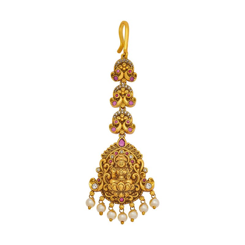 Kushal’s Fashion Jewellery Ruby Gold Plated Ethnic Antique Tikka – 413483