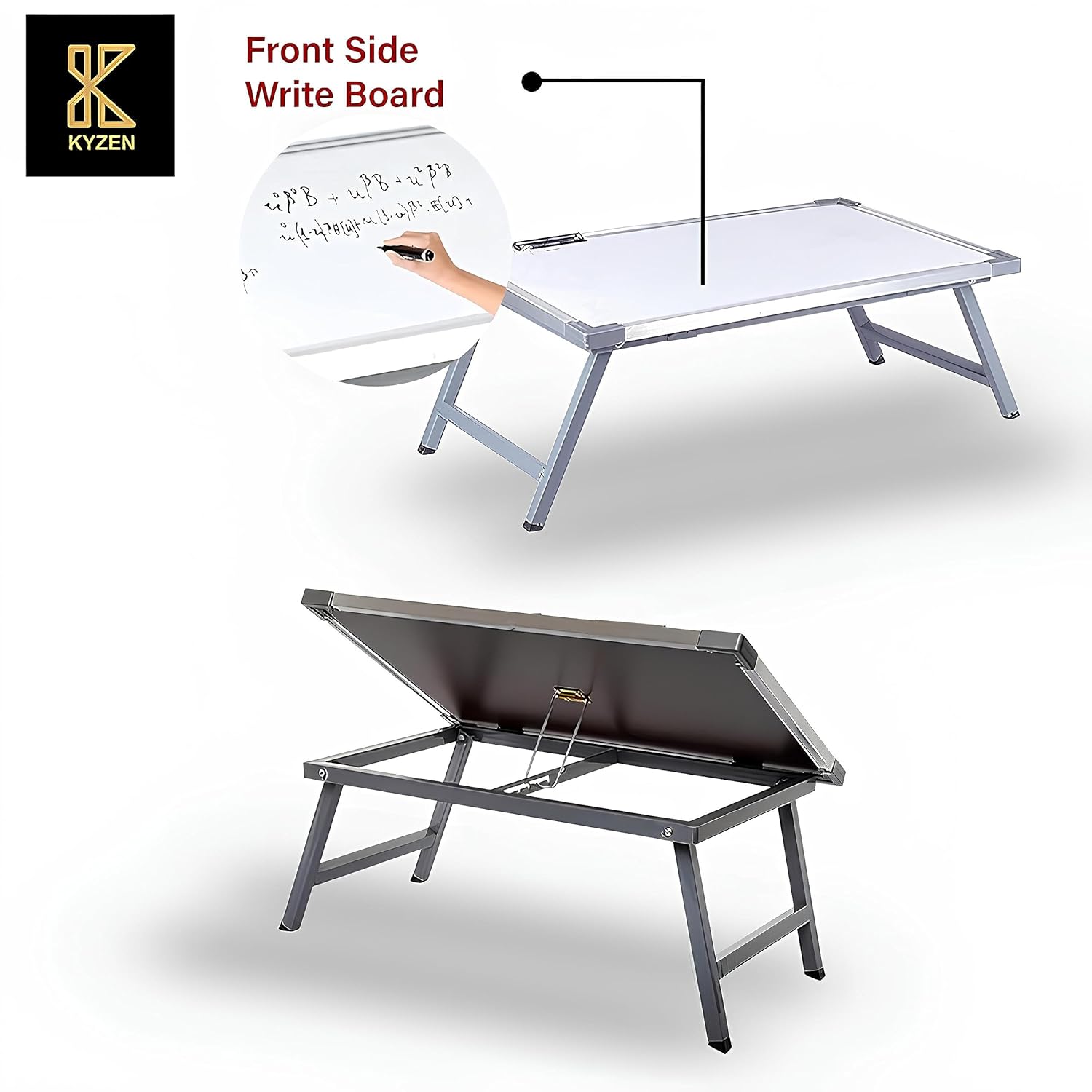4)-Sturdy powder-coated metal body: With its powder-coated metal body, the KYZEN Flexi Board Plus offers durability and stability. The sturdy construction provides a reliable platform for your study materials, laptop, office supplies, or computer equipment