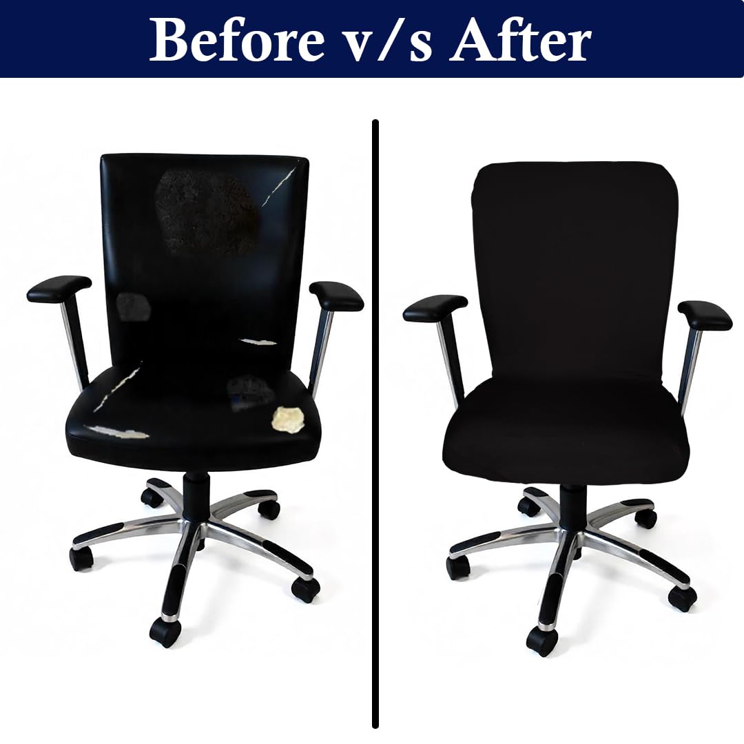 CHAIR PROTECTOR: Removable Stretchable Office Computer chair seat covers protects your office chairs from dirt, stains and scratches. This computer chair cover for office chair covers the tear, rips and tattered edges of your plain old computer chairs and changes the look of your home or office chairs.