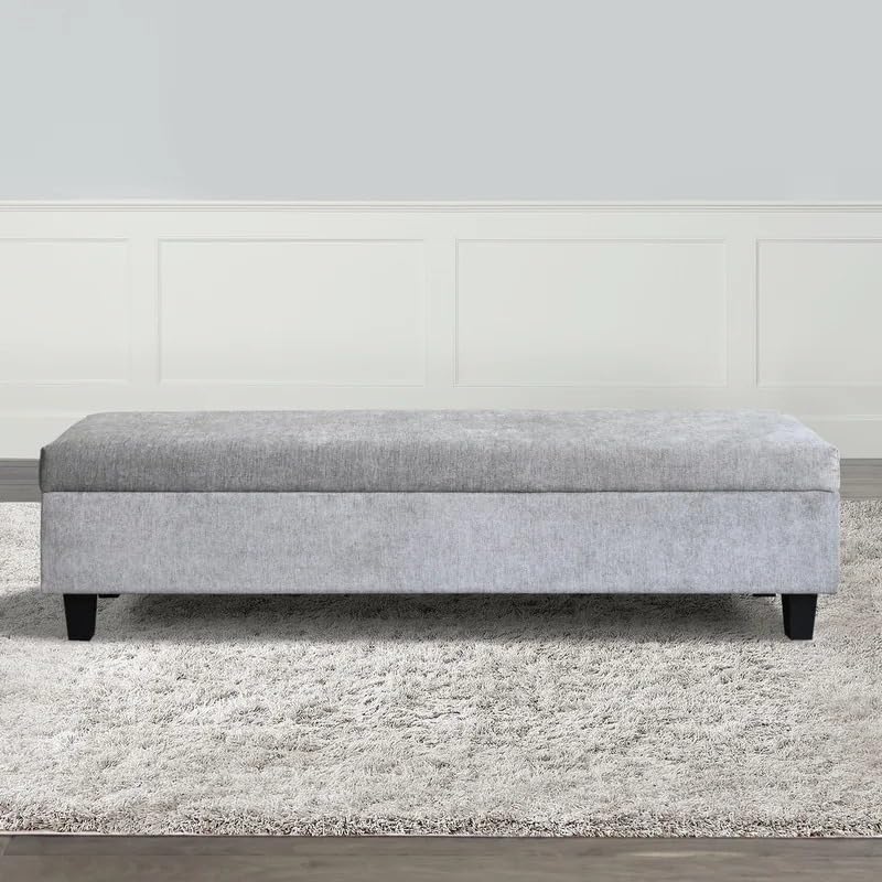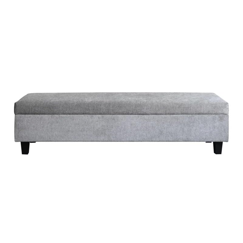 LEGACY OF COMFORT Atiqa Upholstered Storage Bench with Flip Top – Ottoman with Wooden Base for Bedroom Grey