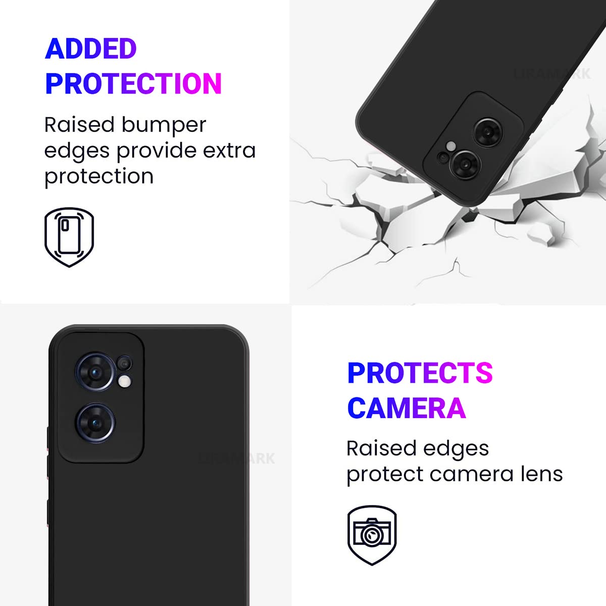 LIRAMARK Silicone Soft Back Cover Case for Oppo Reno 7 5G (Silicone Black)