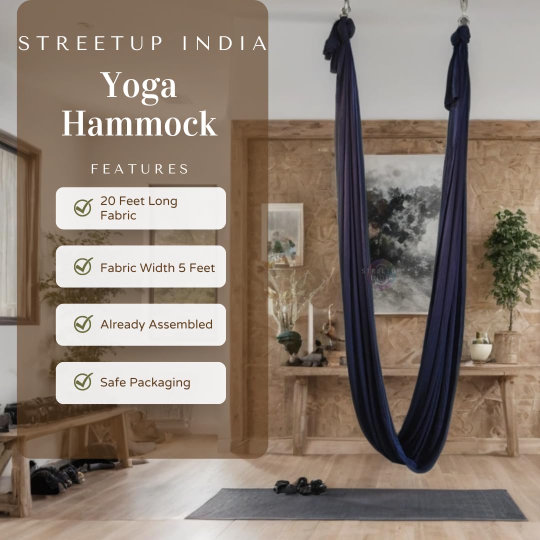 Stretchability: This Lycra fabric provides elasticity, allowing it to stretch and conform to the body during poses.Comfort and Softness: The fabric is smooth, soft, and gentle on the skin, ensuring comfort during prolonged use. Reduces friction, preventing irritation or abrasions.Non-Slip Texture: Offers a balanced level of grip to help hold poses securely while still allowing smooth transitions.Breathable and Moisture-Wicking: he material is breathable, preventing overheating during intense practice. Wicks away sweat, keeping the hammock dry and hygienic.Lightweight and Portable: Despite its strength, the fabric is lightweight, making it easy to carry and set up. Compact and foldable for convenient storage and travel.Easy to Clean and Maintain: achine-washable and quick-drying, ensuring hassle-free cleaning. Retains shape and elasticity after multiple washes.