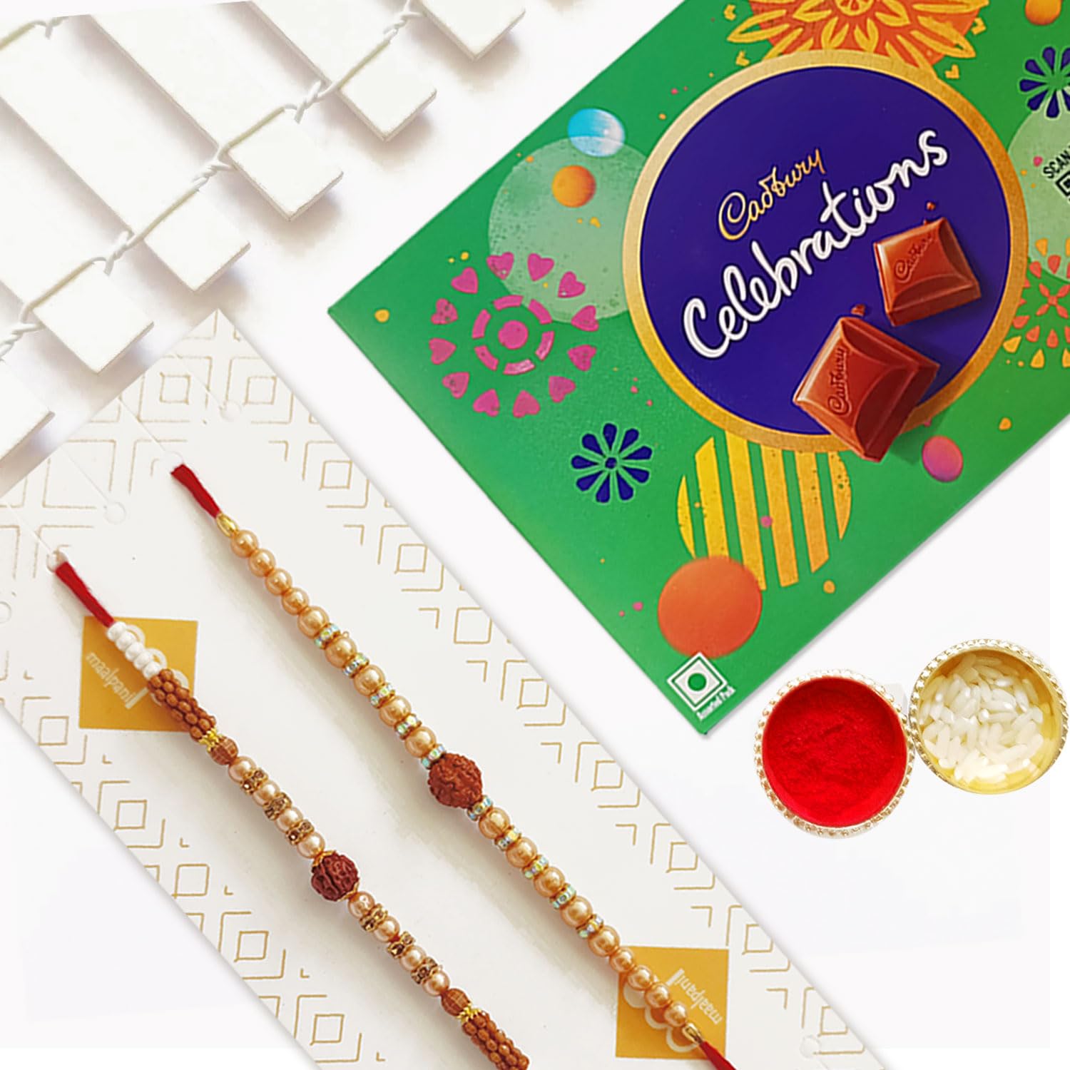 Maalpani Set of 2 Rudraksh Rakhi – Chocolates – Celebration Festival Pack – Chocolate Rakhi Hamper to Brother