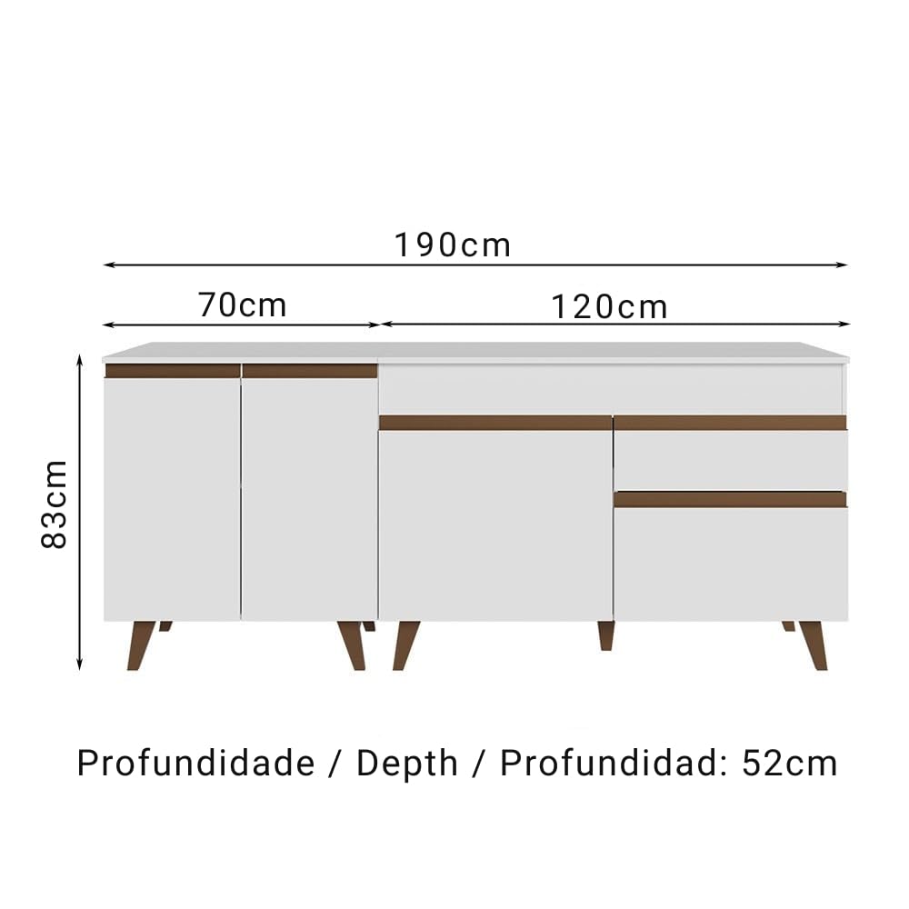 Madesa Modular Kitchen Set with Cabinets Ample Storage 190 Cm Wide with 3 Cabinets, 1 Pull-Out Drawer – White