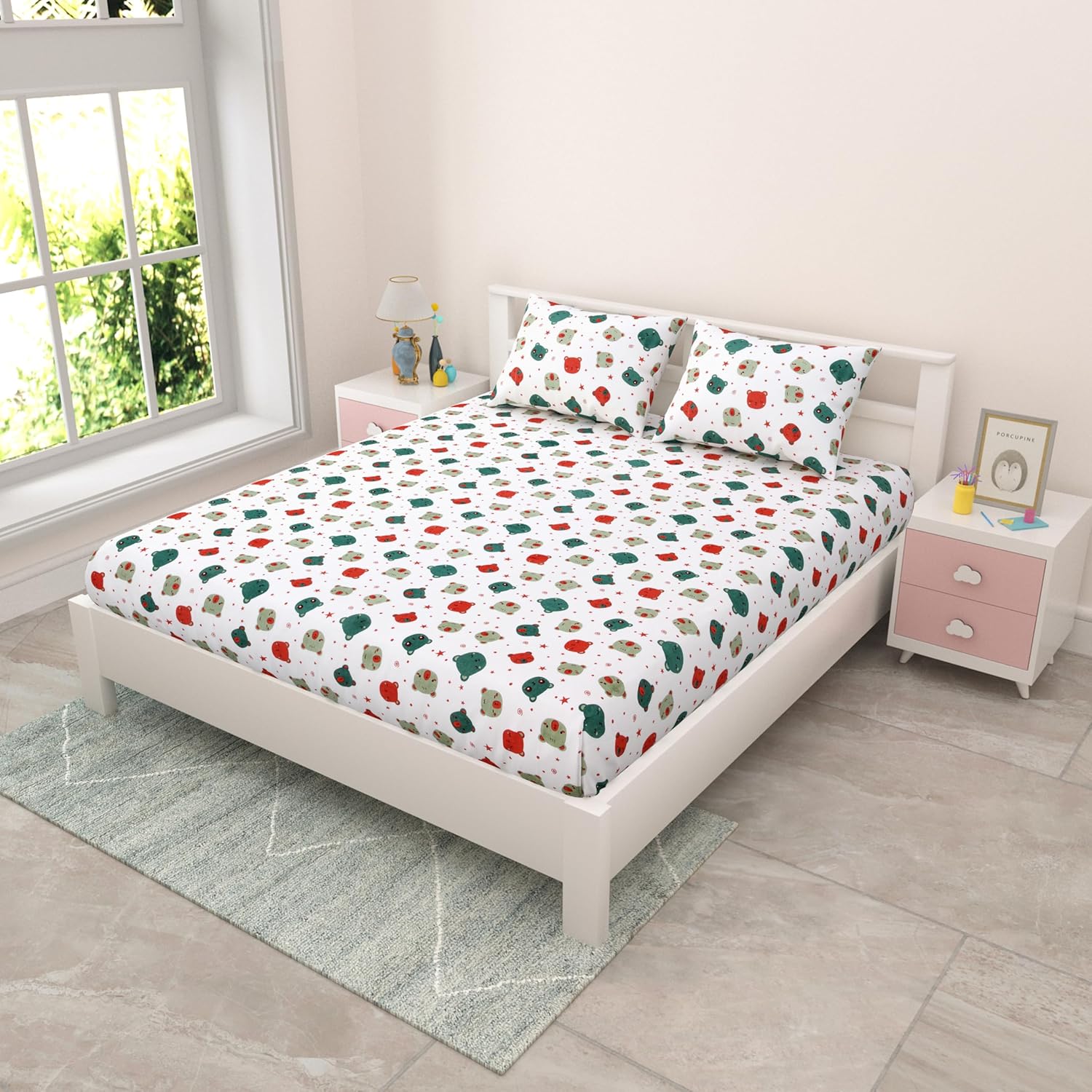 Mafatlal Coo Coo Pure Cotton Kids Bed Sheet Double Bed Queen Size with 2 Pillow Covers, 144 TC (90×100 inches) – Gentle Touch, Fun Cartoon Theme, Pied, for Boys & Girls