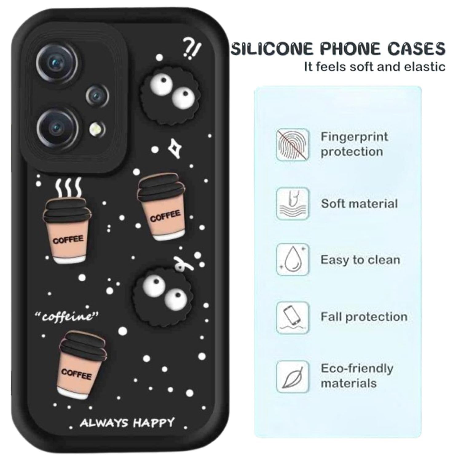 MAGICHUB Back Case Cover Compatible with OnePlus Nord CE 2 Lite 5G | Cute Fun Cartoon 3D Ball Coffee Silicone Case | Body Protection | Camera Protection | Shock Proof | (Black)