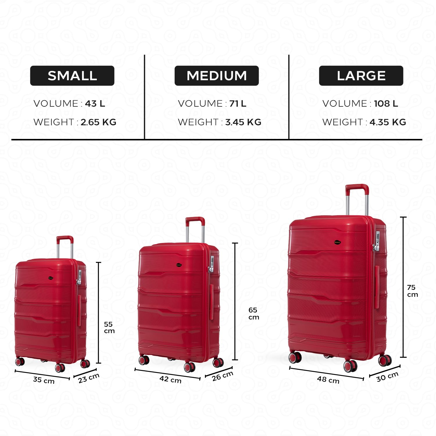 Compact Yet Spacious: Despite its compact size, this trolley bag can carry weights upto 25 kgs. The cabin bag dimensions are 48cm (width) x 30 cm (depth) x 75cm (height) and it weighs just 4.3 kgs, allowing you to pack more without worrying about exceeding weight limits.