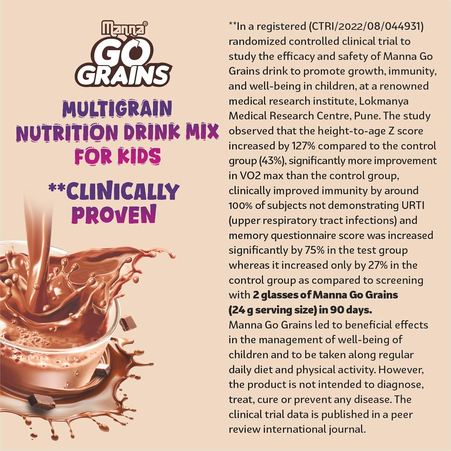 CLINICALLY PROVEN 2X GROWTH – Manna Go Grains contains 33% of your kids daily requirement ( RDA) in every serve of B Vitamins ( B1 – B7), Chromium for physical growth and height.