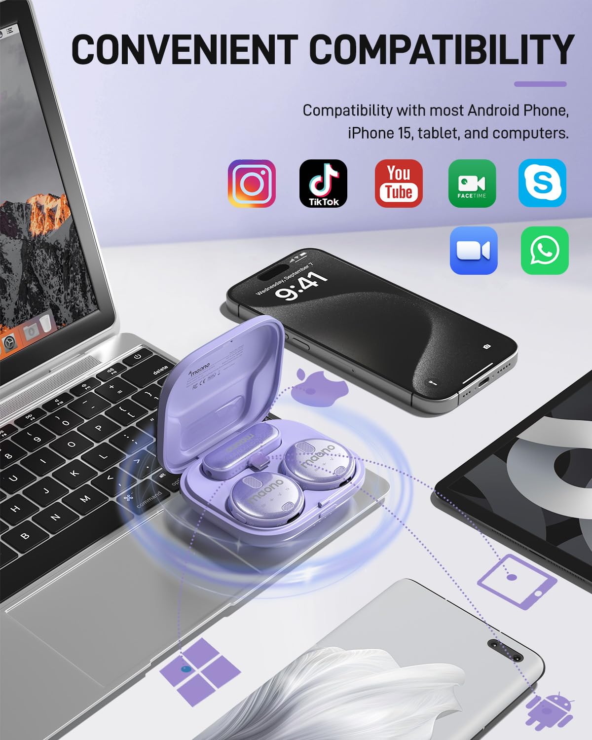 FULLY UPGRADED, CRISPER AUDIO: This wireless mic system utilizes cutting-edge Dual Micro Electro Mechanical Systems (MEMS) mics in each TX. This means that your voice will be captured with exceptional clarity, natural and balanced. With a high sampling rate of 48K and an outstanding S/N ratio of 100dB, our mic ensures precise audio capture, effectively minimizing background noise and guaranteeing crystal-clear, distortion-free audio.
