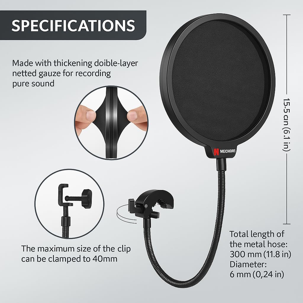 Elevate Your Audio Quality with the MECHDEL Professional Pop Filter – Designed for Creators, Streamers & Musicians. Say goodbye to muffled recordings and harsh “P” or “B” sounds! The MECHDEL Pop Filter is your ultimate sound-shielding solution. With dual-layer acoustic mesh, it disperses air blasts effectively, delivering smoother vocals every time.
