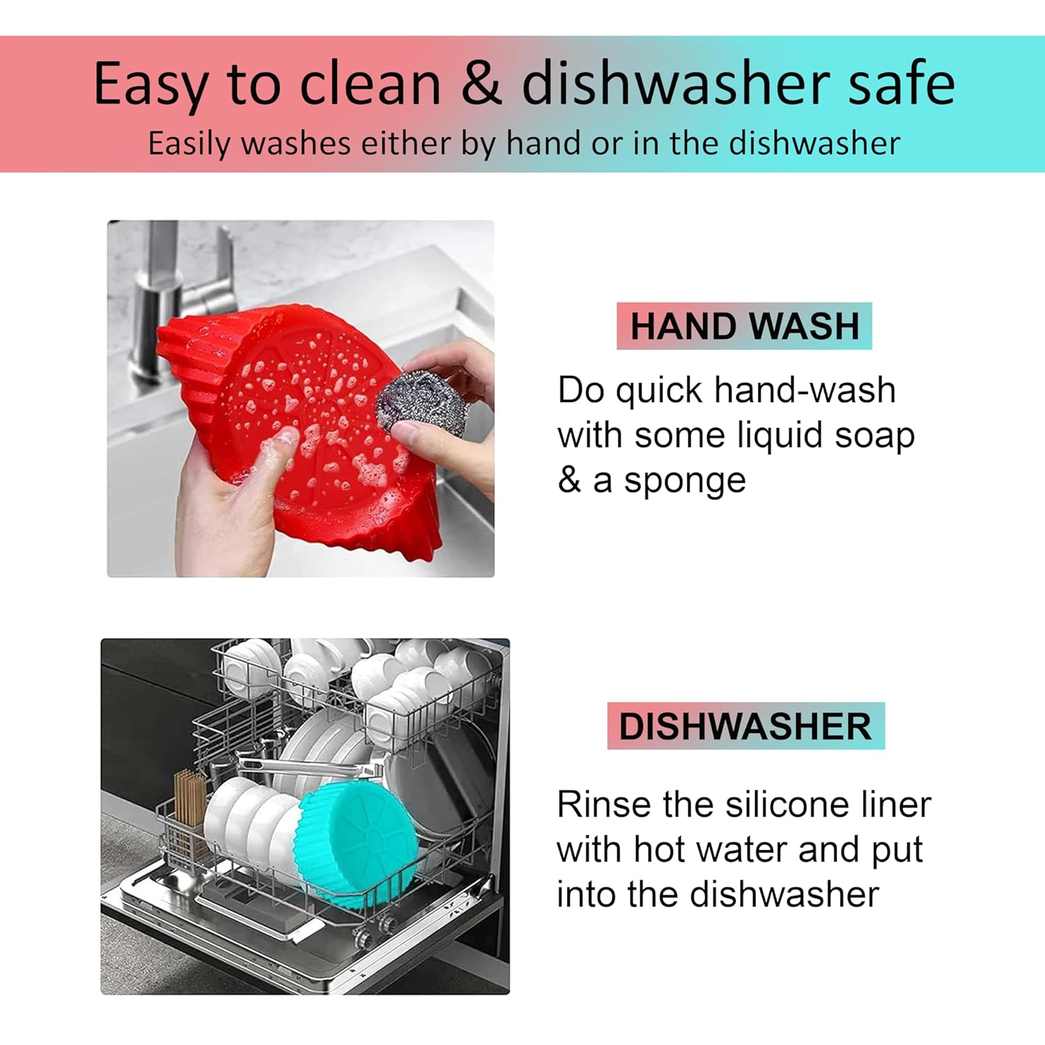 DISHWASHER SAFE & EASY TO CLEAN: Silicone bowls liners are completely dishwasher safe, allowing you to avoid the trouble of hand washing. Keeps your air fryer free from grease, food residue, and grime without compromising the life span of your air fryer. Air fryer silicone liners