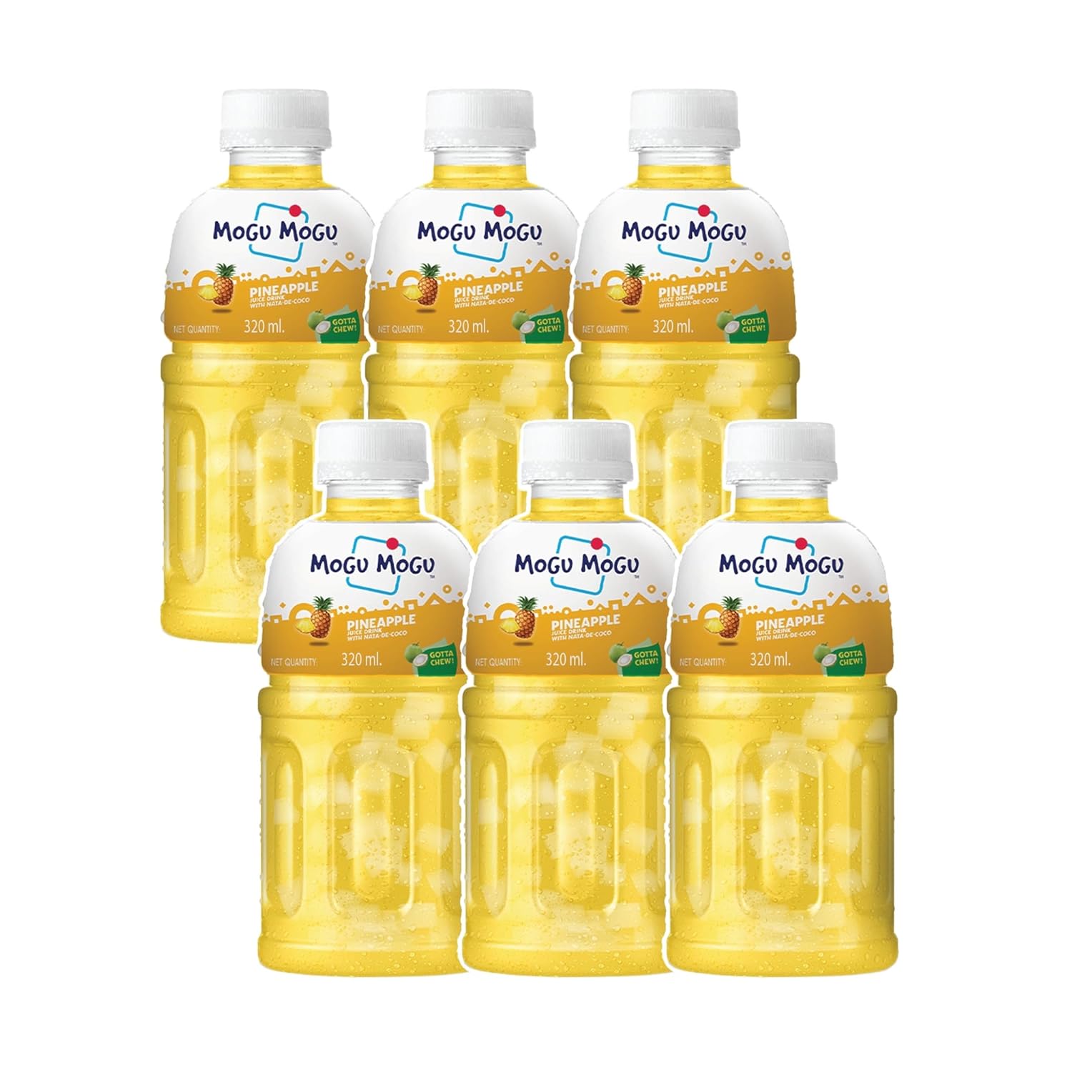 Mogu Mogu Pineapple Juice Drink with Nata de Coco Jelly 320ml (Pack of 6)| Refreshing Tropical Thai-Made Sip & Chew Beverage.