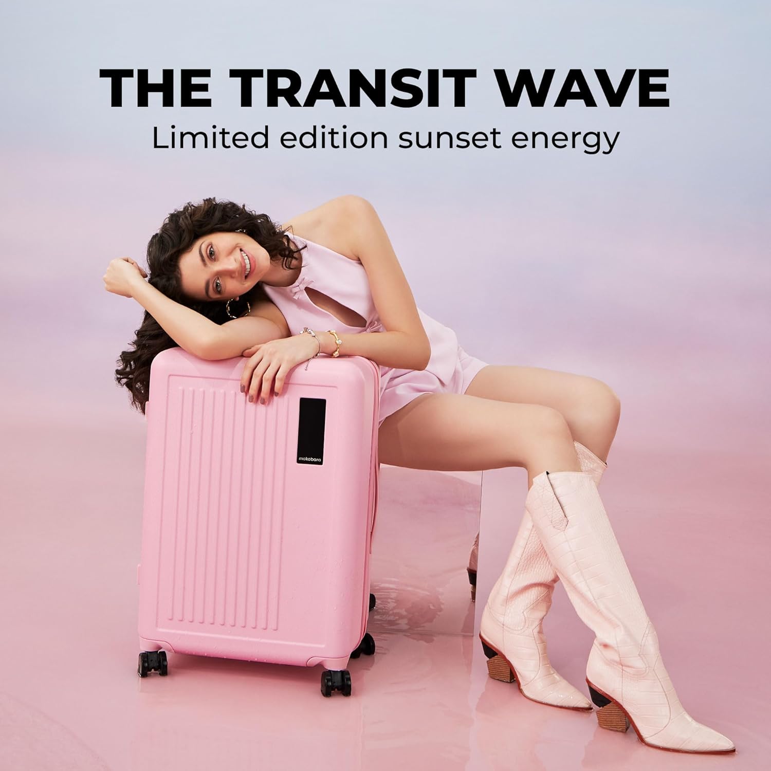Meet the Transit Wave, a limited edition collection inspired by cool, beachy summer sunsets. Pick a colour. Pack all your colours. The only thing you need to complete your travel fit now is an aperol spritz. The Transit Wave Check-in makes room for a 7 to 14 day trip.