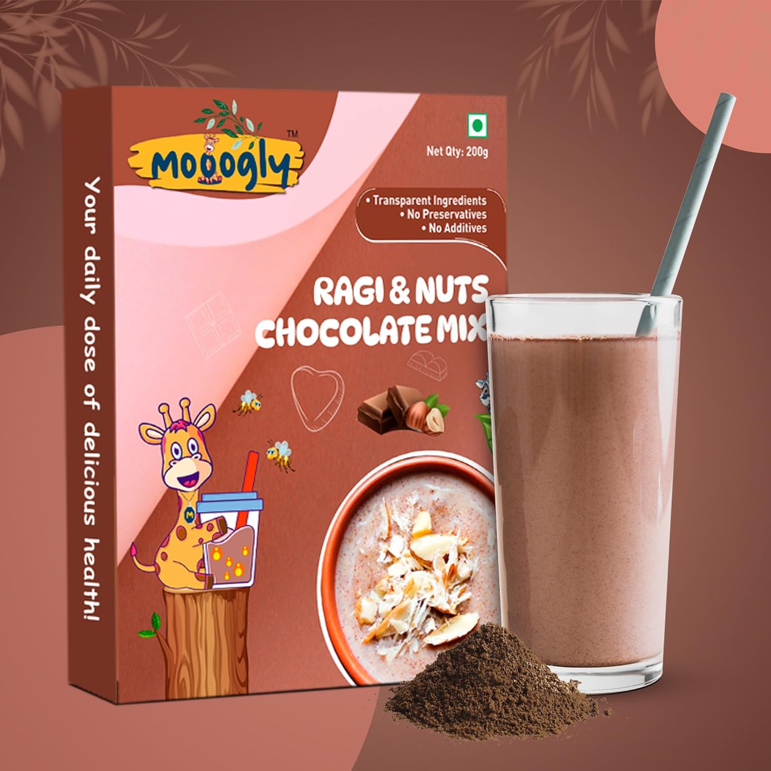 BRAND CONNECTION – At Mooogly, we prioritize your family’s health. Our Ragi & Nuts Chocolate Mix is crafted with love and care, ensuring top quality. Create joyful moments with every sip of our premium chocolate milk mix.