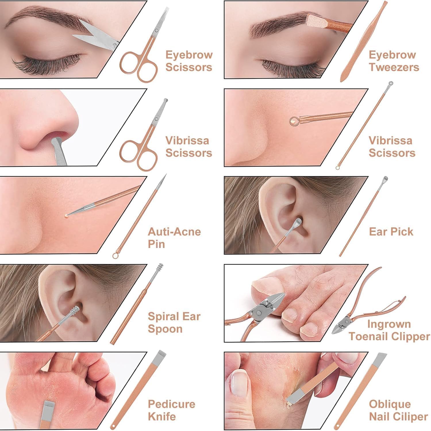 ✔️ Multi-Purpose Use – Covers all grooming needs including manicuring, pedicuring, eyebrow shaping, blackhead removal, exfoliating, and more – all in one set.